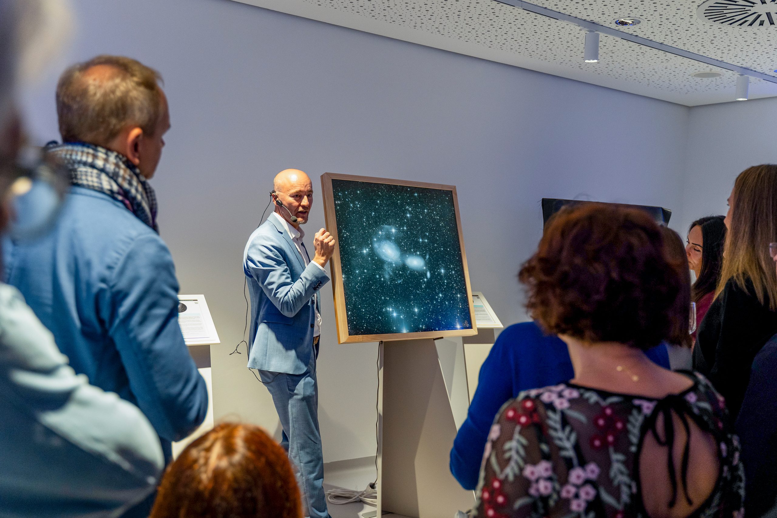 Over 100 people gathered in the Sternwerkstatt pop-up gallery in the Linzerie to listen to a reading from Dietmar Hager’s book “Vom Zauber der Sterne und dem Ende der Nacht”. The star friends were welcomed by Erich Pröll. The nature filmmaker known from the ORF series “Universum”, who shares a love of nature with Dietmar Hager, also wrote the foreword to the book.