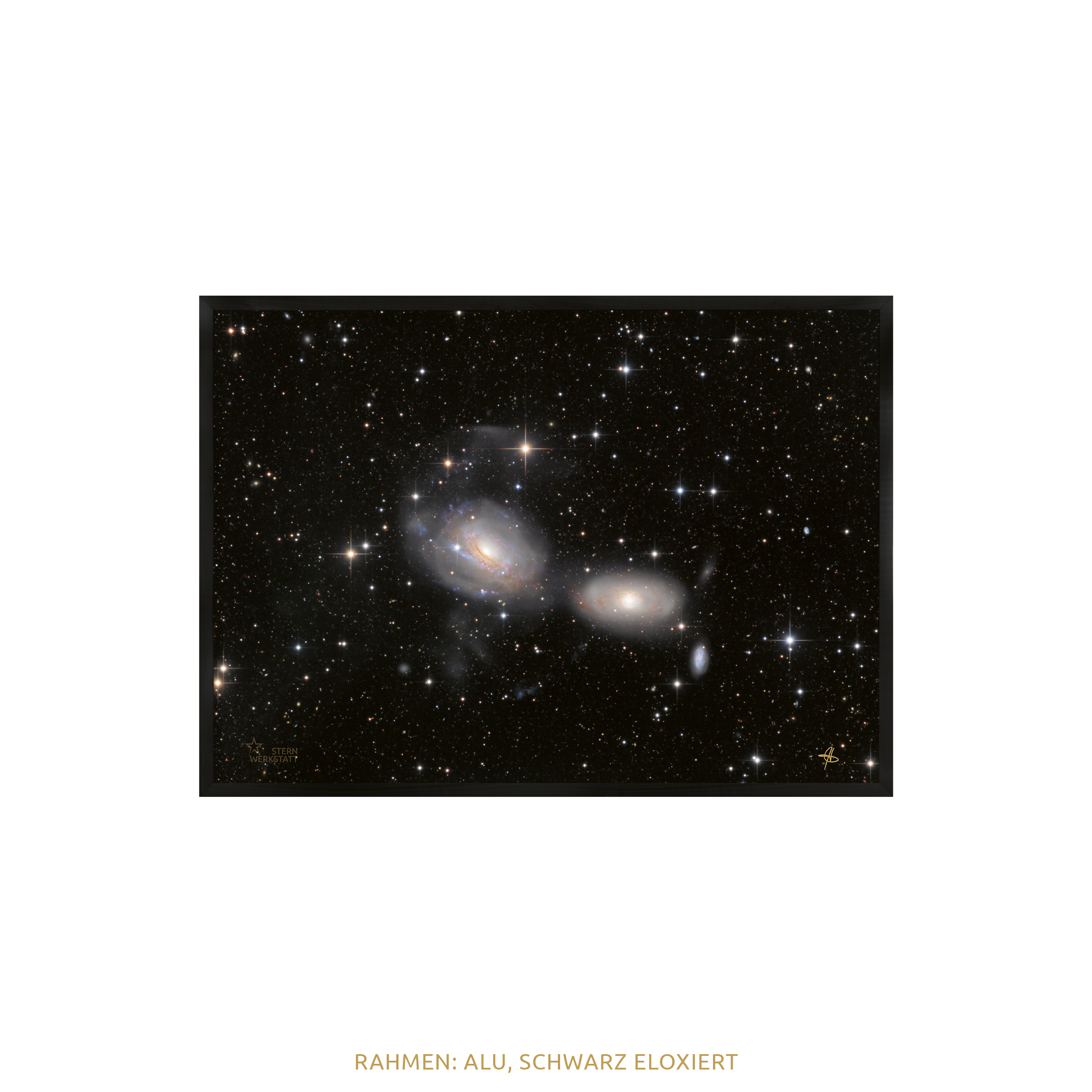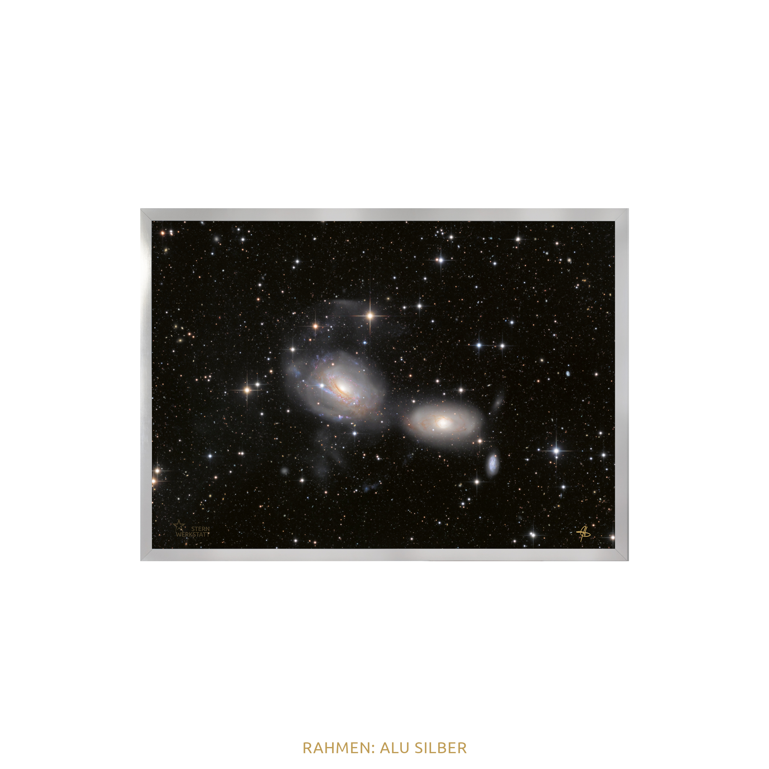 Auffallend in diesem Bild ist der sogenannte „galatic envelope“, der sich hier als Schleier präsentiert. Dieser enevelope wird gebildet von einzelnen Sternen, die aus den Galaxien herausgerissen wurden und nun als „verwaiste Sternenvölker“ diesen Schleier bilden.