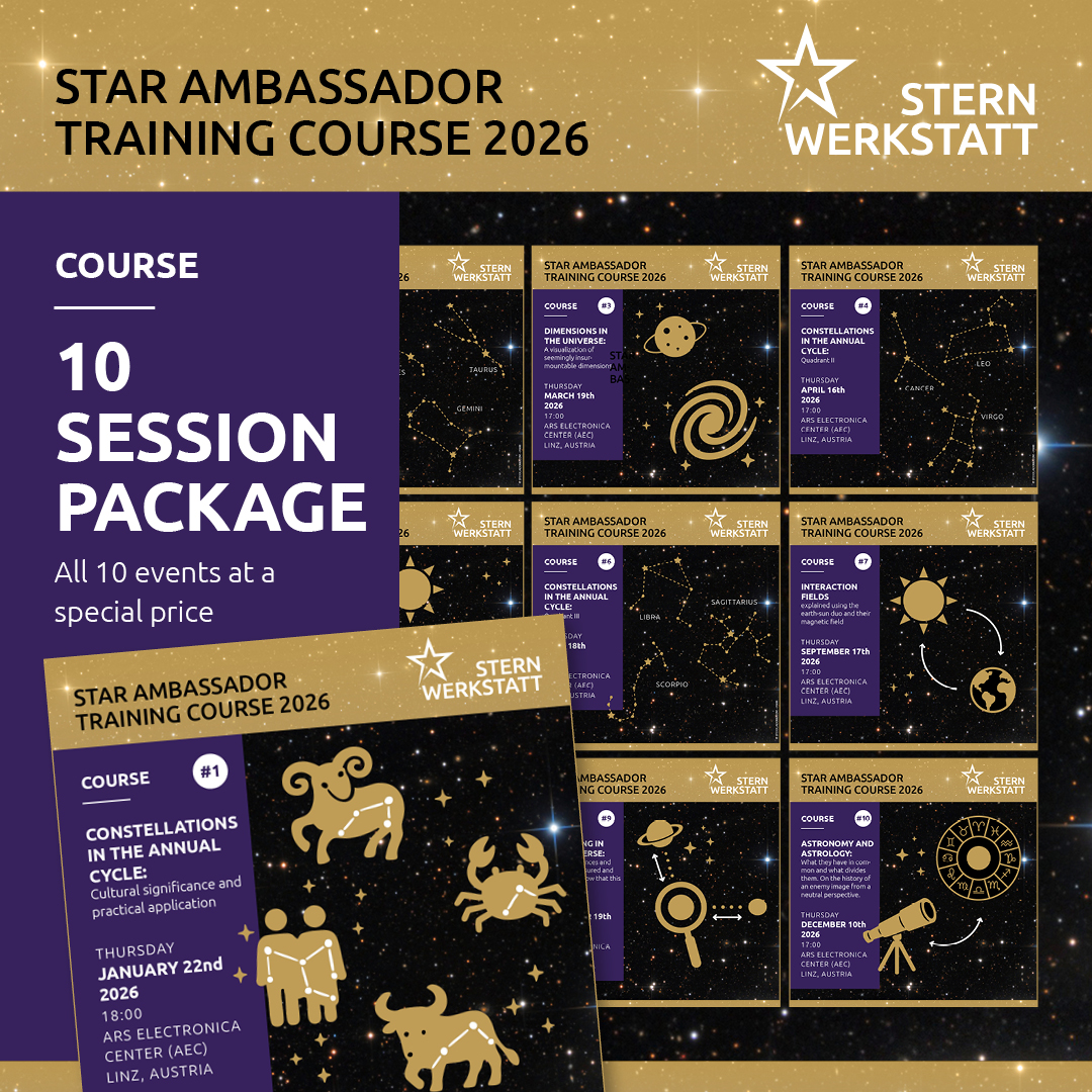 With the Star Ambassador Block of 10, you secure access to all Starwerkstatt experience evenings – including knowledge impulses, mythology stories, and exclusive insights behind the scenes of the universe.