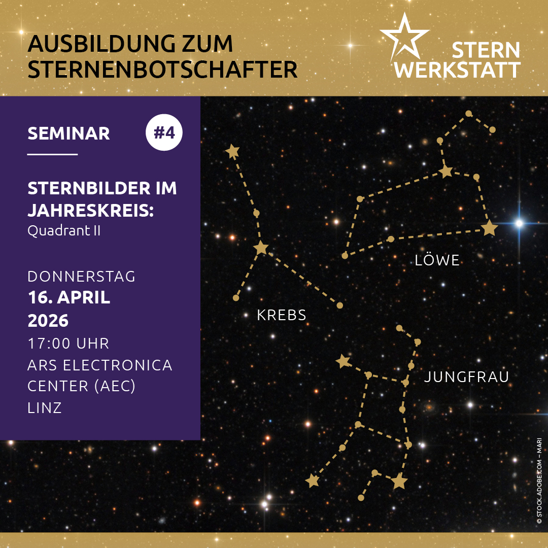 Krebs, Löwe, Jungfrau repräsentieren den Höhepunkt des Sommers und die Phase des Wachstums. Dieser Teil des Jahreskreises befasst sich mit den Themen Schutz, Stärke und Struktur. Wir betrachten die astronomischen Gegebenheiten dieser Sternbilder und tauchen in die Mythologien ein, die von emotionaler Tiefe, königlicher Kraft und der Suche nach Perfektion erzählen. Der Vortrag stellt eine Verbindung her zwischen dem Zenit des Sonnenstandes und dem Streben nach Reife und Ordnung.